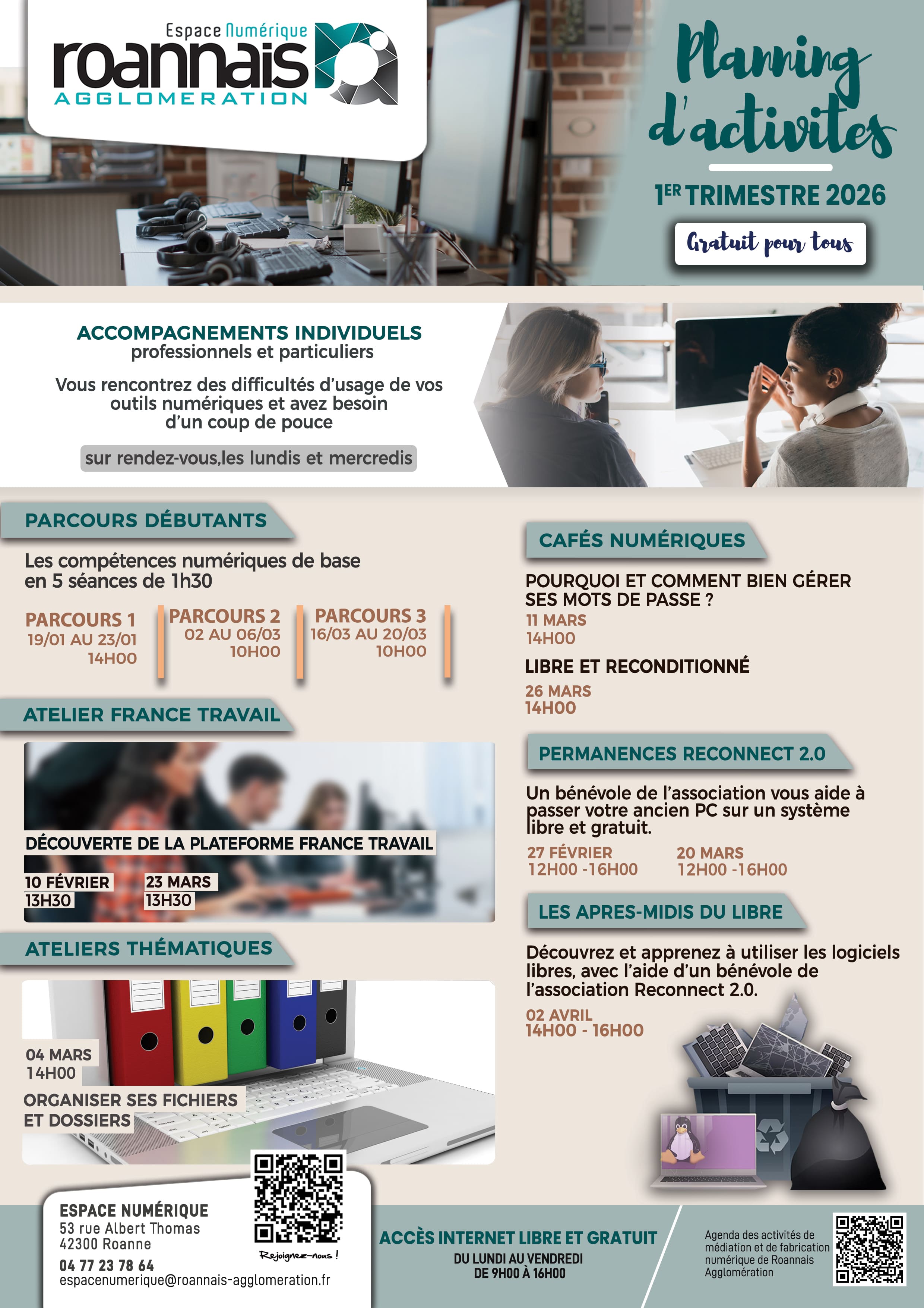 - Accompagnements individuels : Besoin d’aide avec vos outils numériques ? Prenez rendez-vous les lundis et mercredis pour un accompagnement personnalisé.