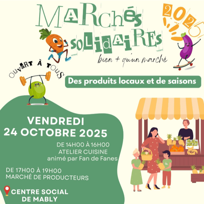 Un marché solidaire aura lieu le vendredi 24 octobre de 14h à 19h au Centre Social de Mably.