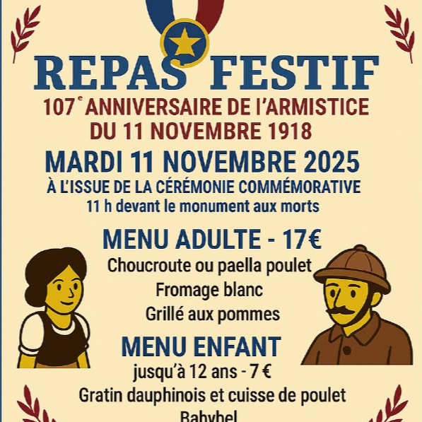 Cette cérémonie s'accompagnera se conclura par un verre de l’amitié offert par la collectivité, puis un repas festif organisé par la FNACA à la salle polyvalente du Bourg ouvert au public et qui se tiendra à la salle polyvalente du Bourg.